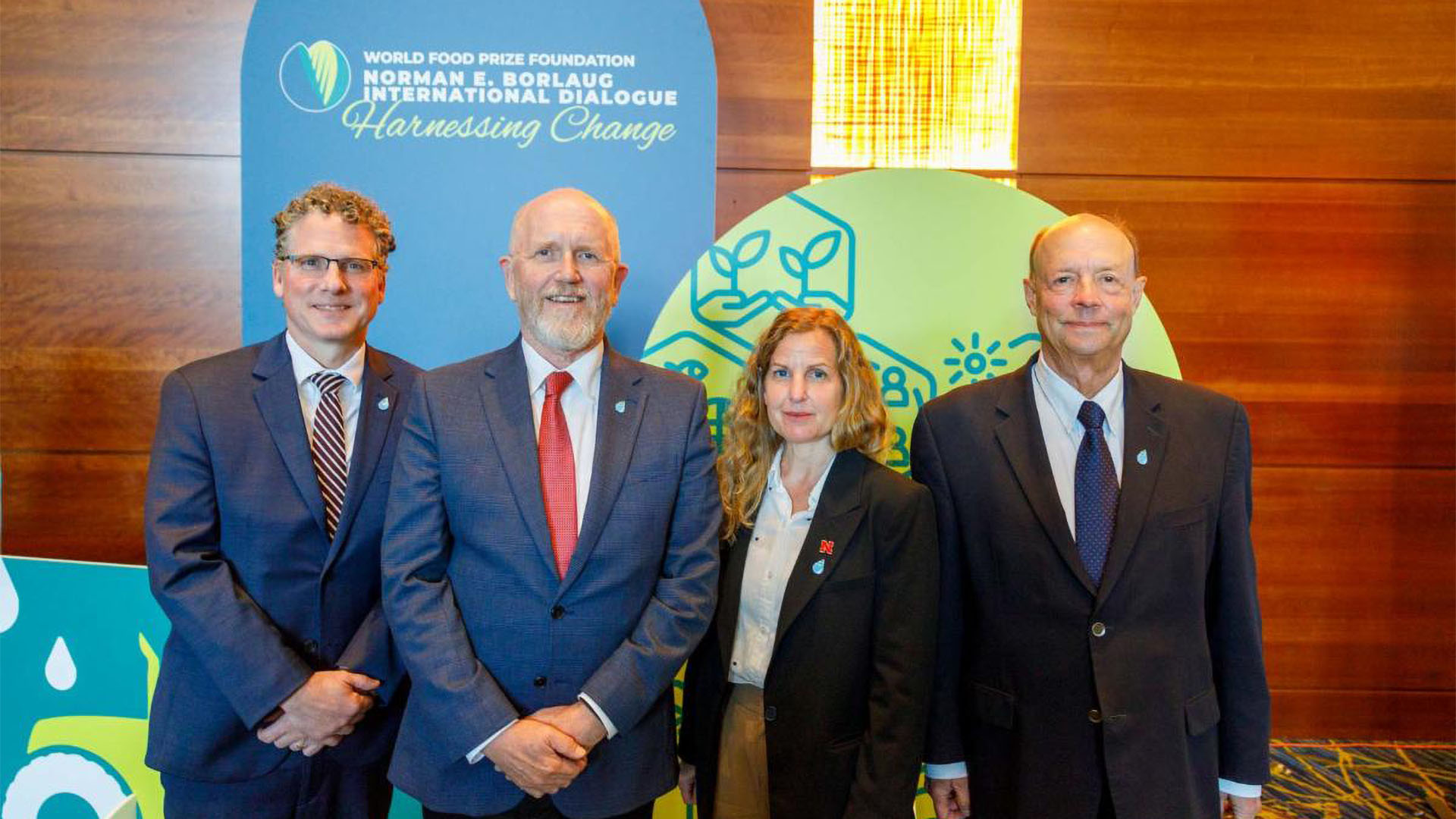 DWFI Executive Director Peter McCornick, Director of Research Christopher Neale, and members of the communications team Amber Poythress and Arianna Elnes attended the 2023 Norman E. Borlaug International Dialogue. The event, also known as the "Borlaug Dialogue," brings together individuals from more than 65 countries to address cutting-edge issues related to global food security and nutrition. The DWFI team participated in a main stage presentation on agricultural solutions for food and water security and hosted an exhibitor booth. Additionally, the U.S. Agency for International Development (USAID) announced its selection of DWFI to lead its new Feed the Future Innovation Lab for Irrigation and Mechanization Systems (ILIMS).